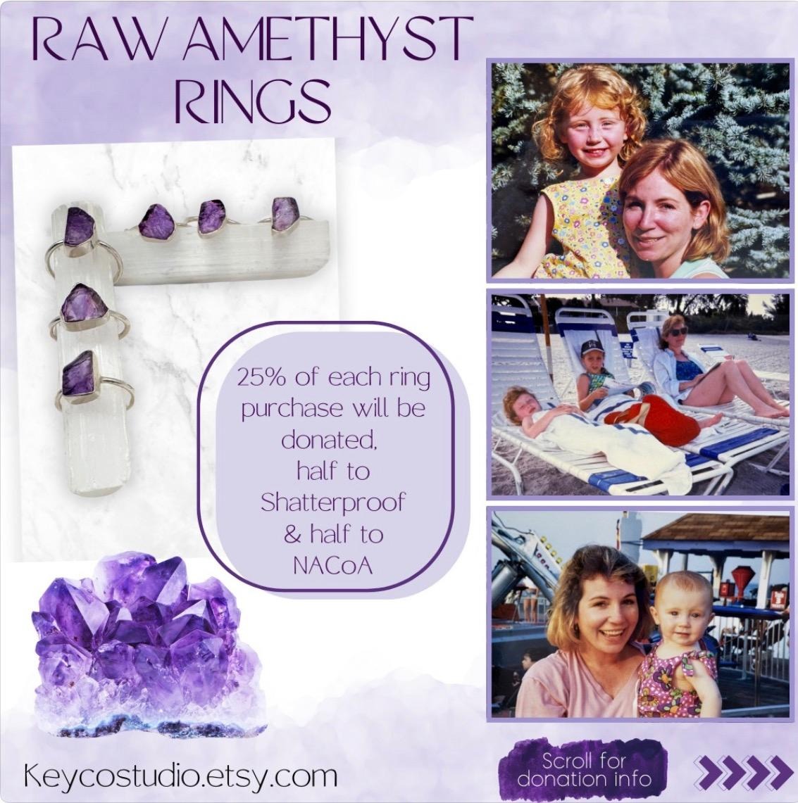 25% of each raw amethyst ring purchase will be donated—half to Shatterproof & half to The National Association for Children of Addiction (NACoA). See the second slide or the Etsy listing for more information about these two non-profits.